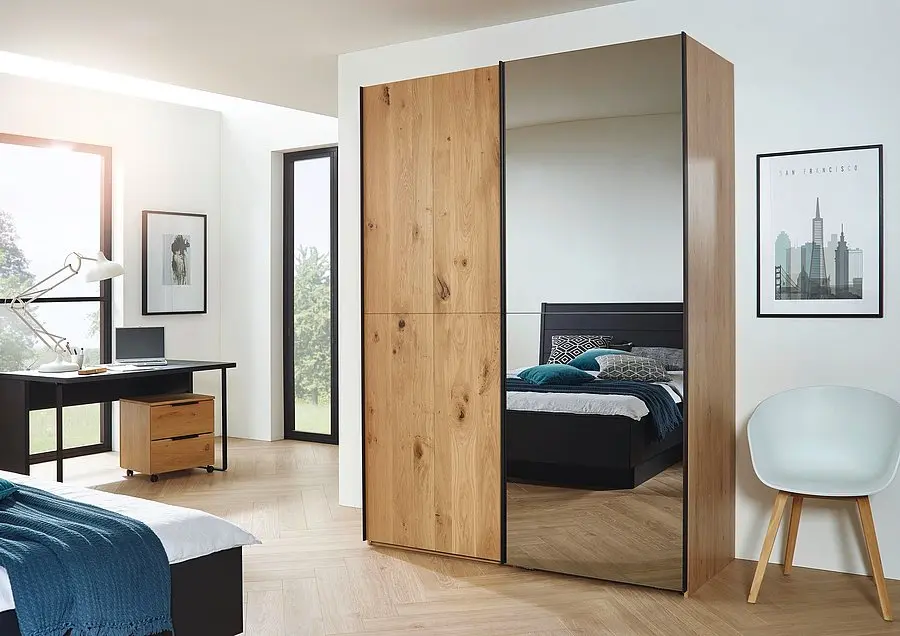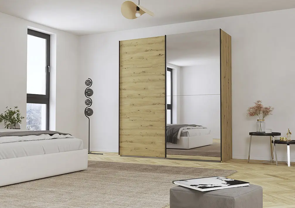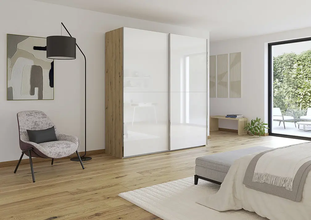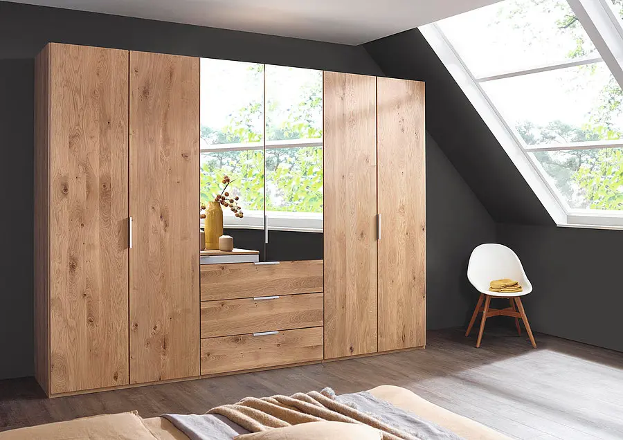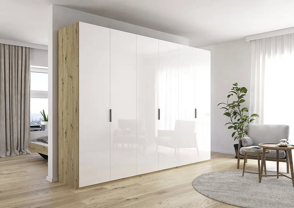 Armoire avec un grand choix de dimensions (160, 200, 240, 300, 320 ou 400 cm). Deux hauteurs possibles (222 ou 236 cm)