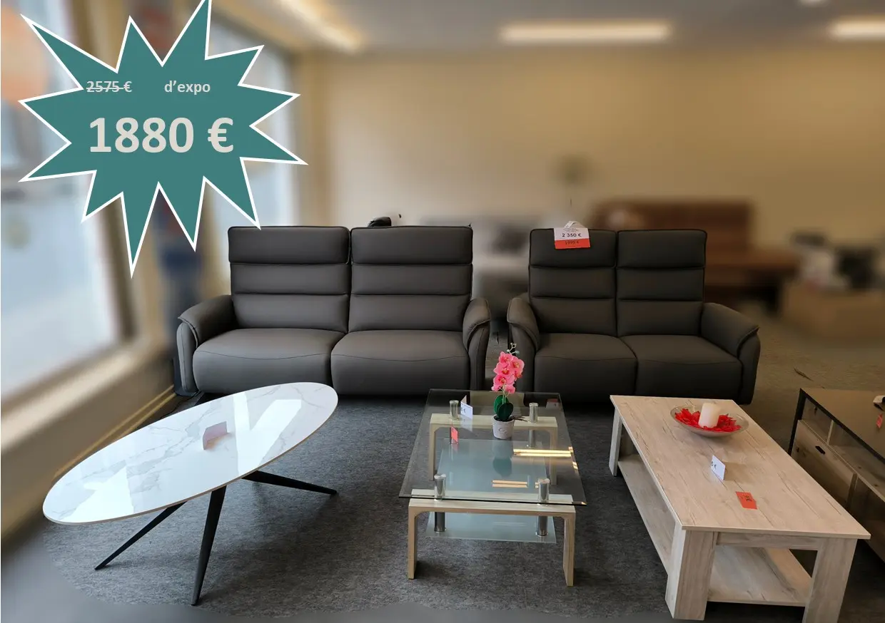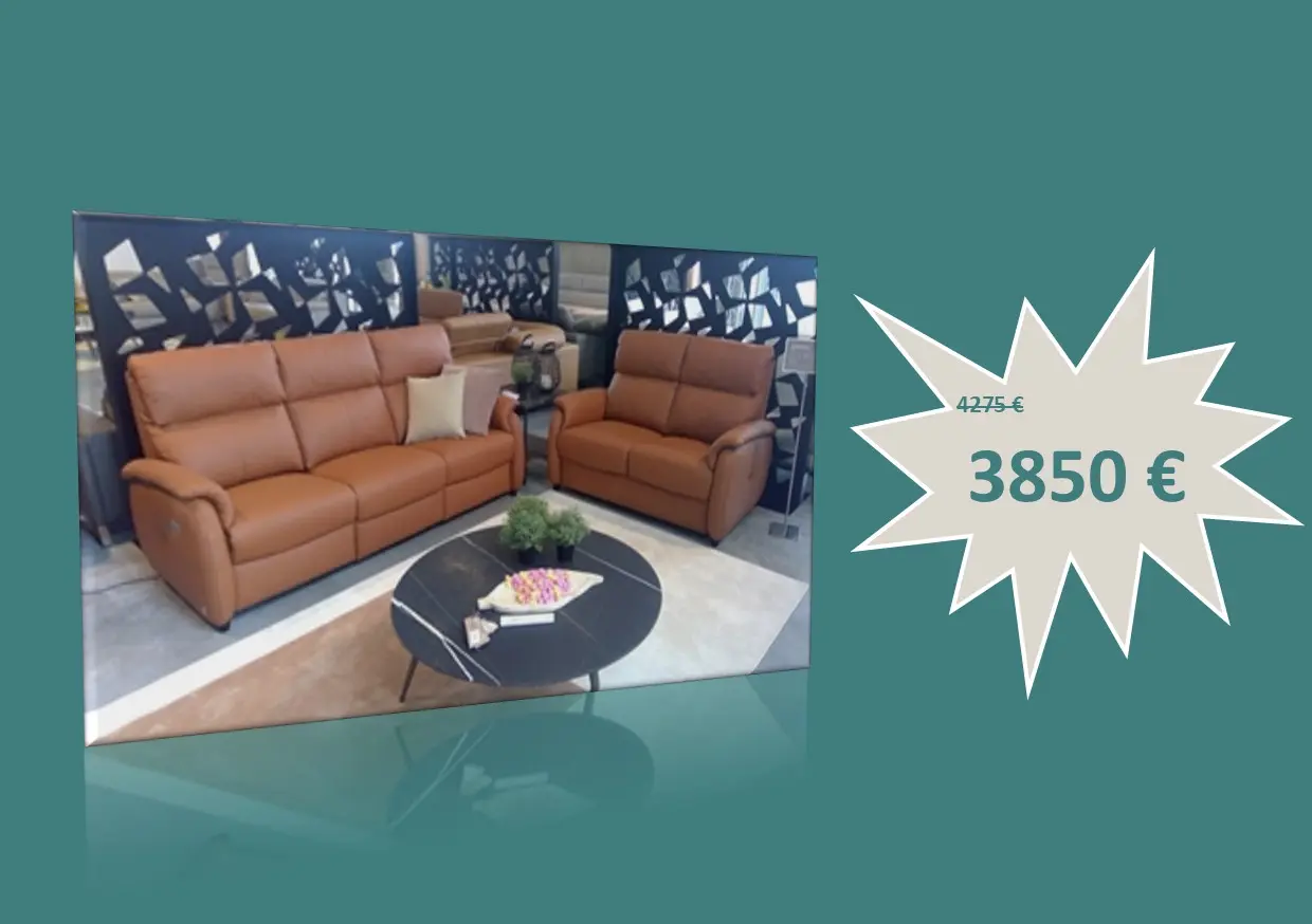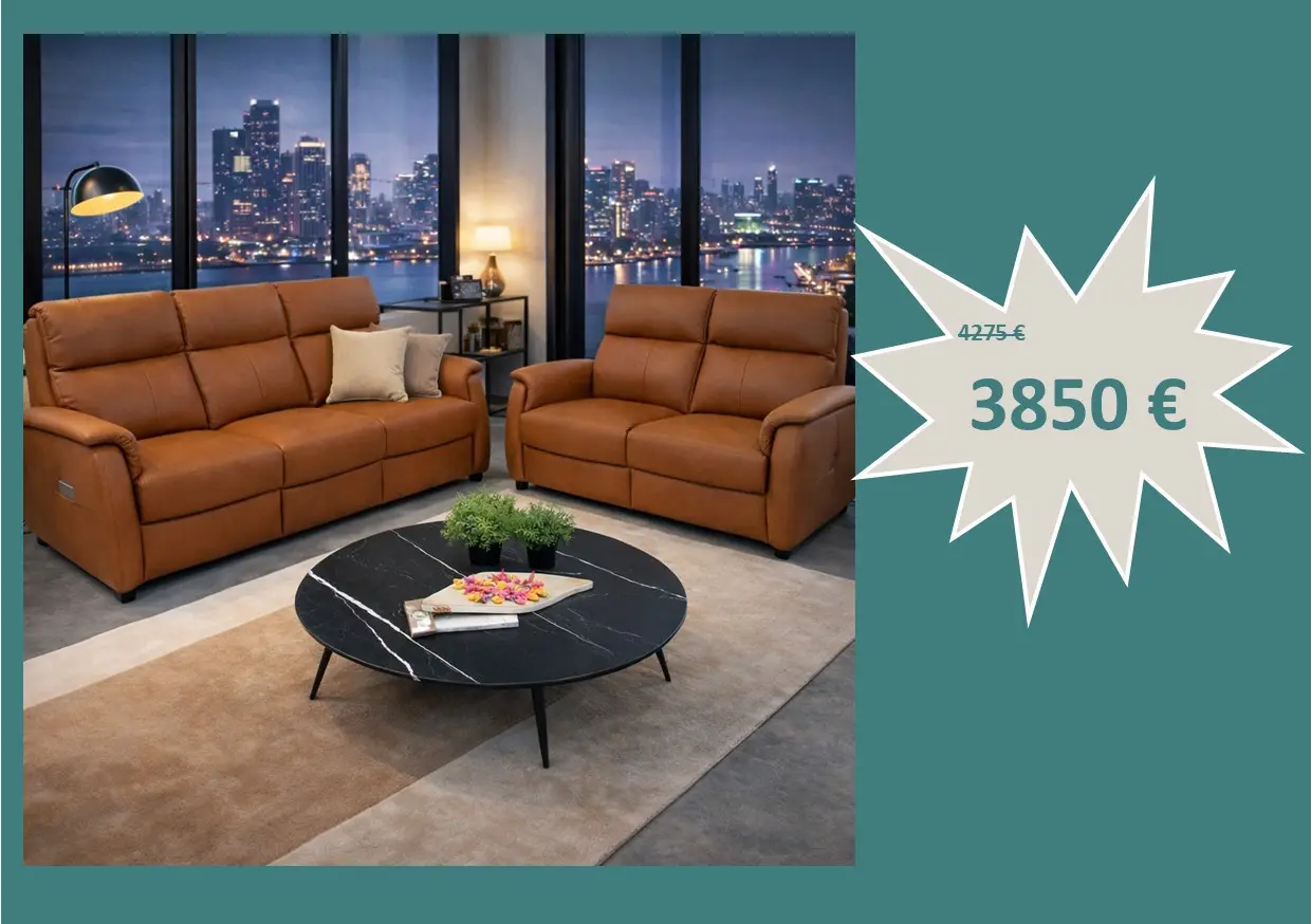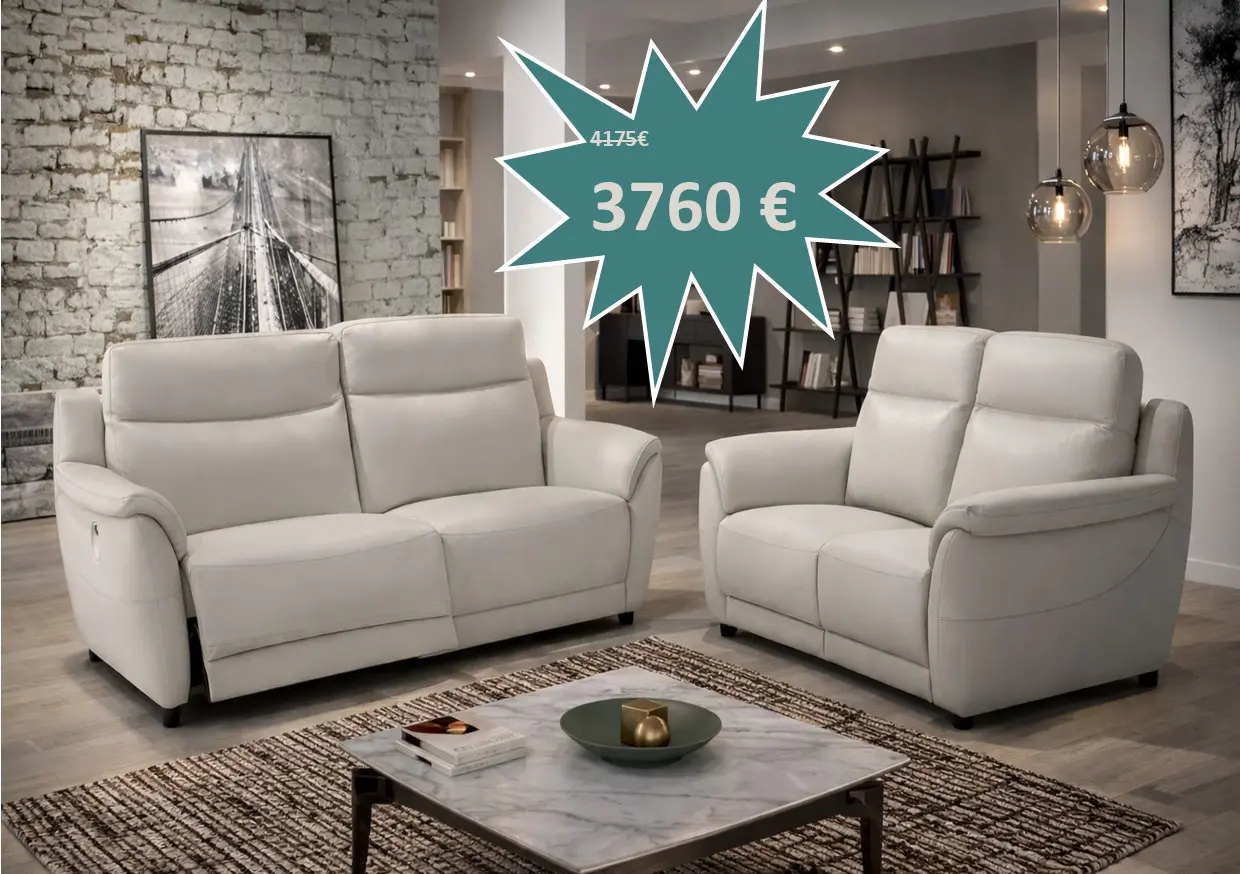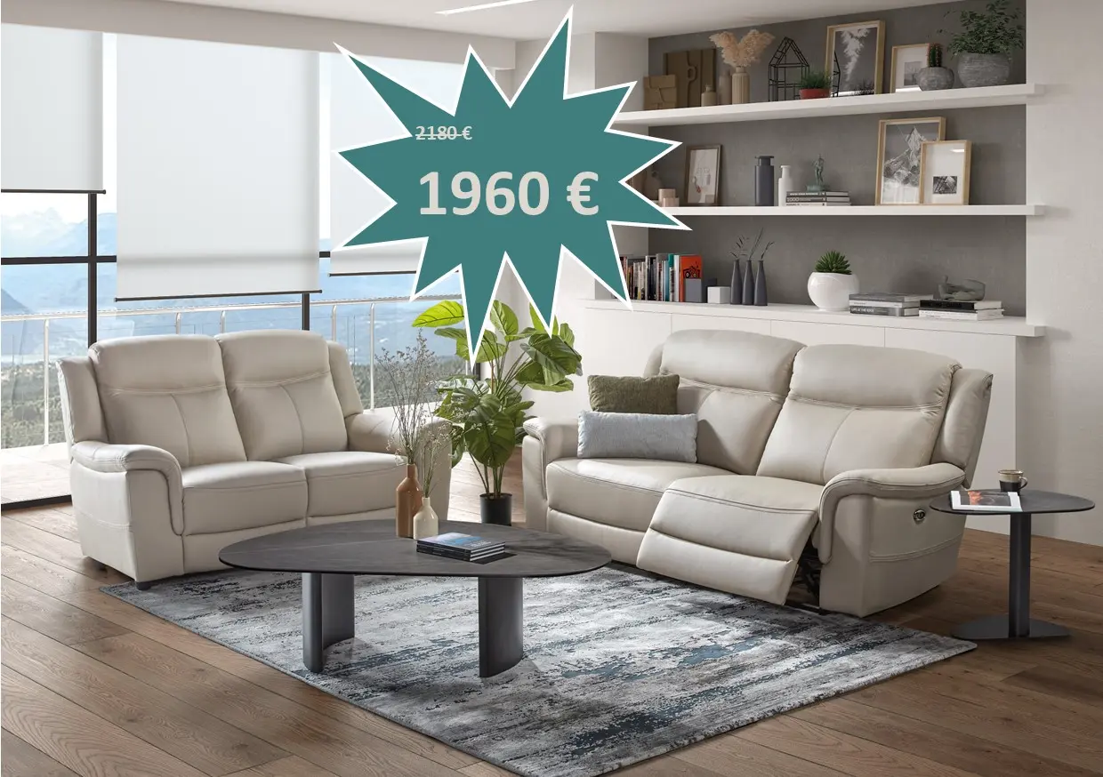 Salon Salina en cuir composé d'un canapé 3 places avec 2 relax électriques et un canapé 2 places au prix de 3850 €