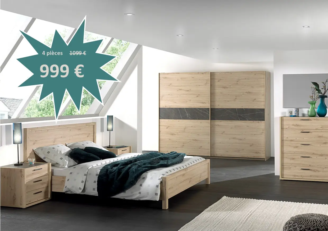 Chambre Elena comprenant le lit en 160 cm, 2 chevets et la garde-robes au prix de 999 €