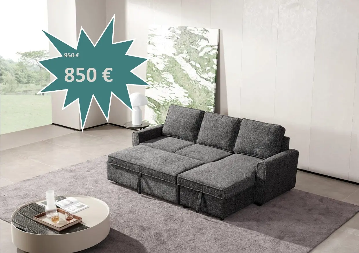 Salon convertible Santana en tissu avec coffre de rangement au prix de 850 €