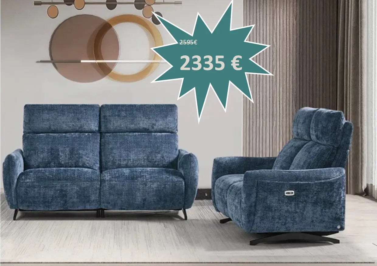 Salon Cyro en tissu composé d'un canapé 3 places avec 2 relax électriques et un canapé 2 places fixe au prix de 1930 €