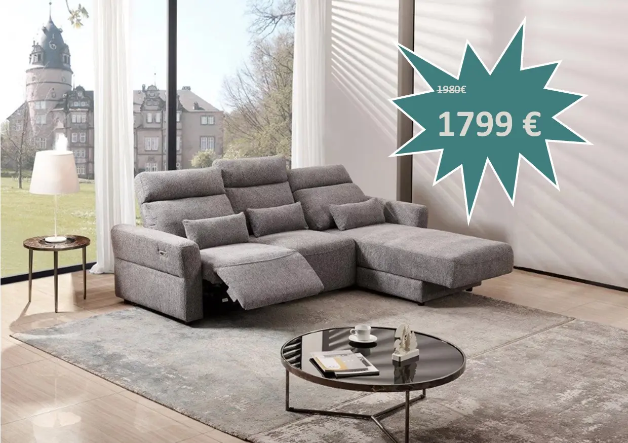 Salon Lorelei en tissu composé d'un relax électriques et d'une chaise longue lit électrique au prix de 1799 €