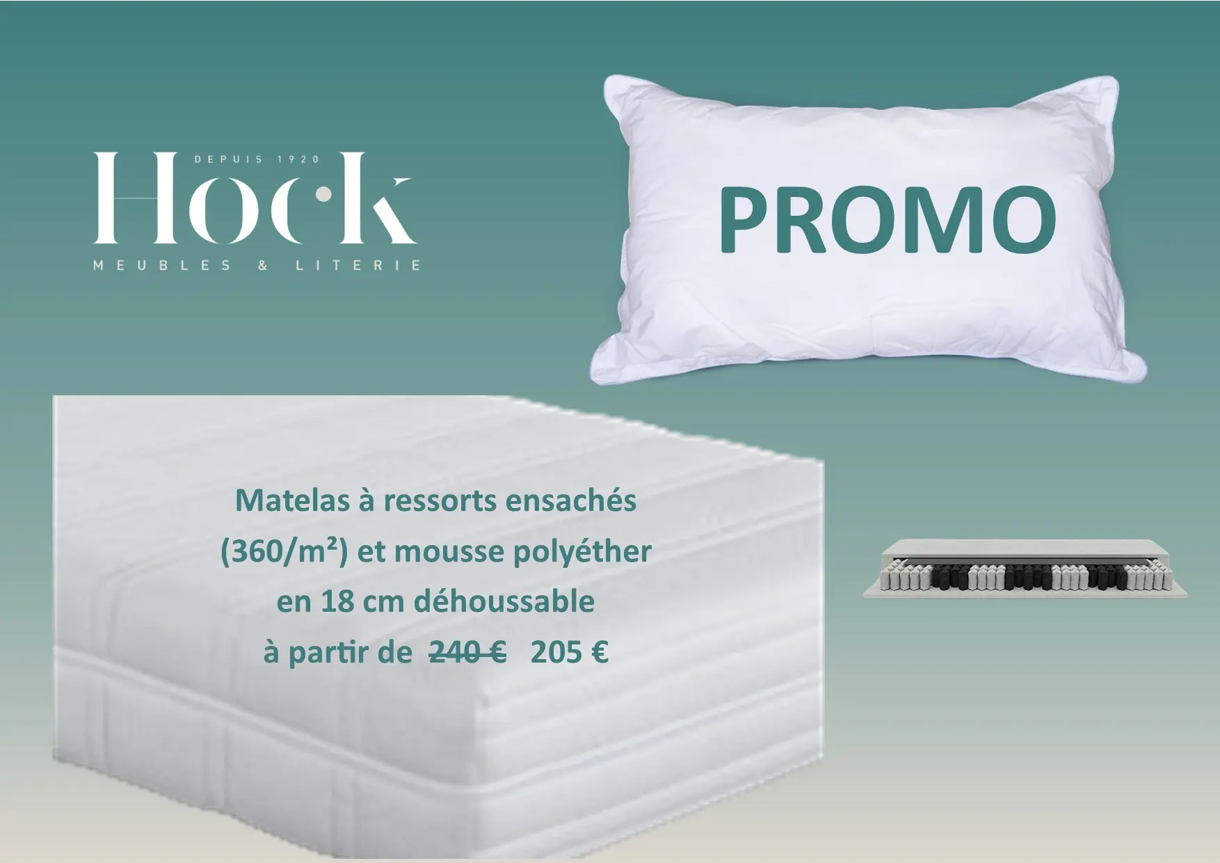 Matelas à ressort ensachés (360/m²) et mousse polyéther // 7 zones de confort // 18 cm d'épaisseur// déhoussable housse lavable à 60 °