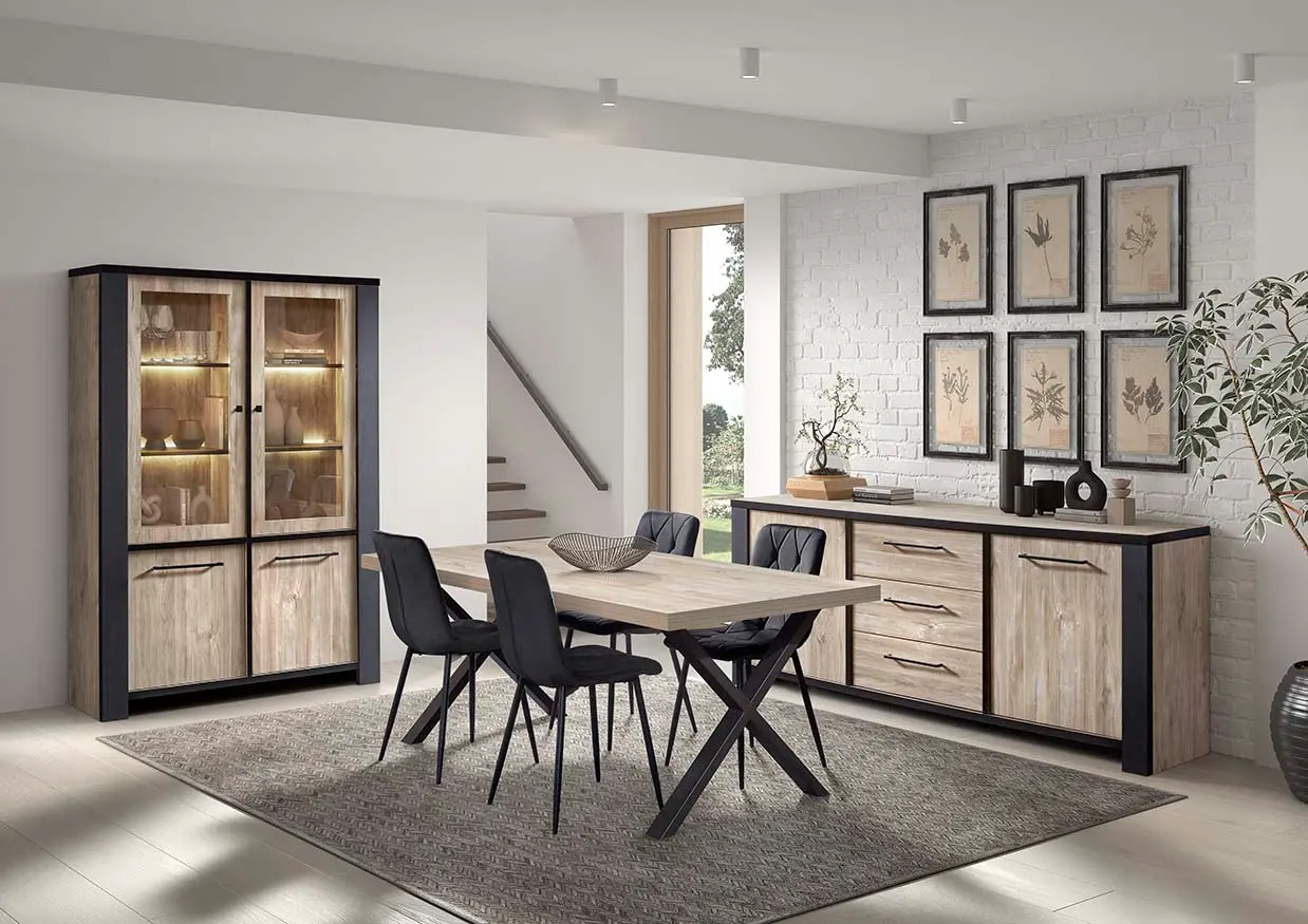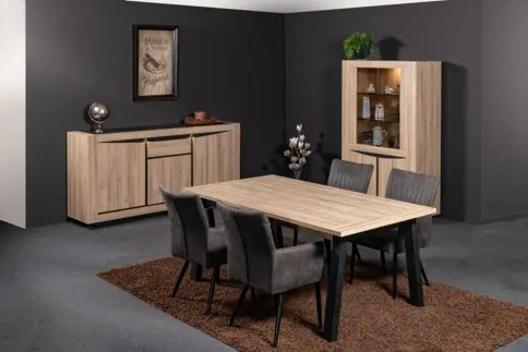 Salle à manger comprenant le bahut en 210 cm, l'argentier et la table allongeable en 180-235 cm
