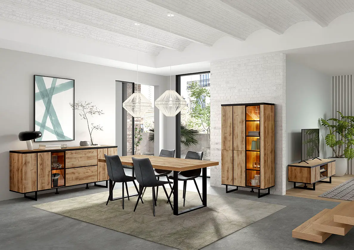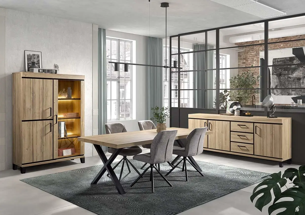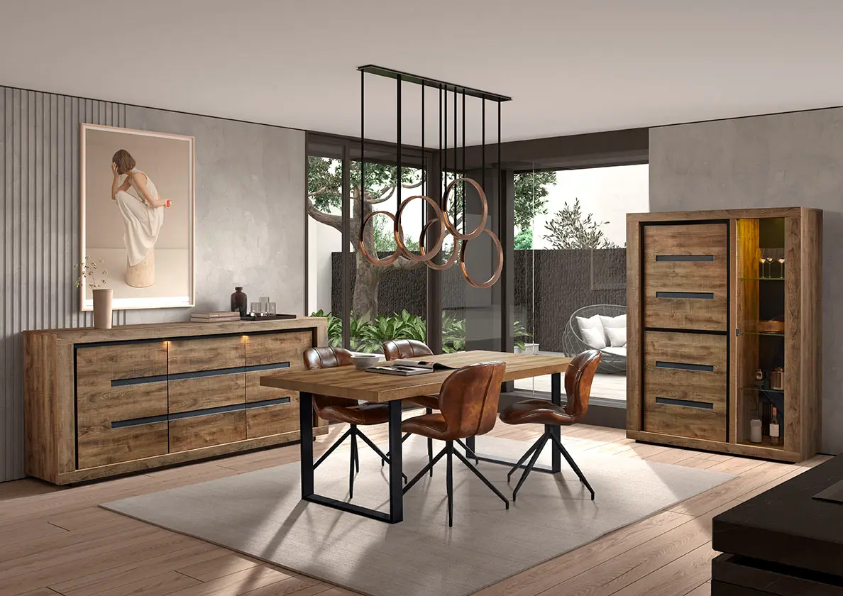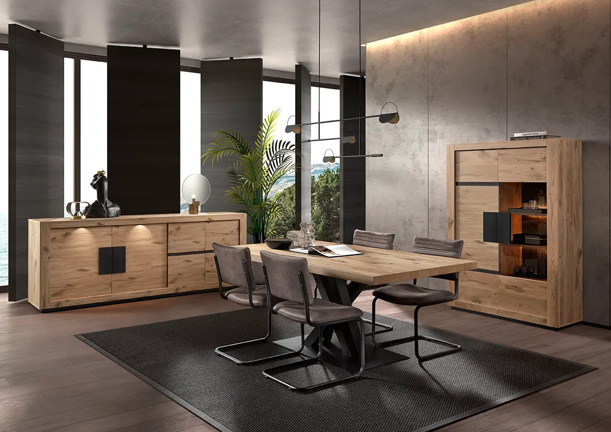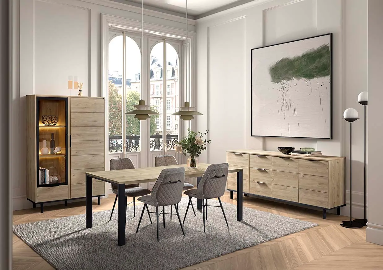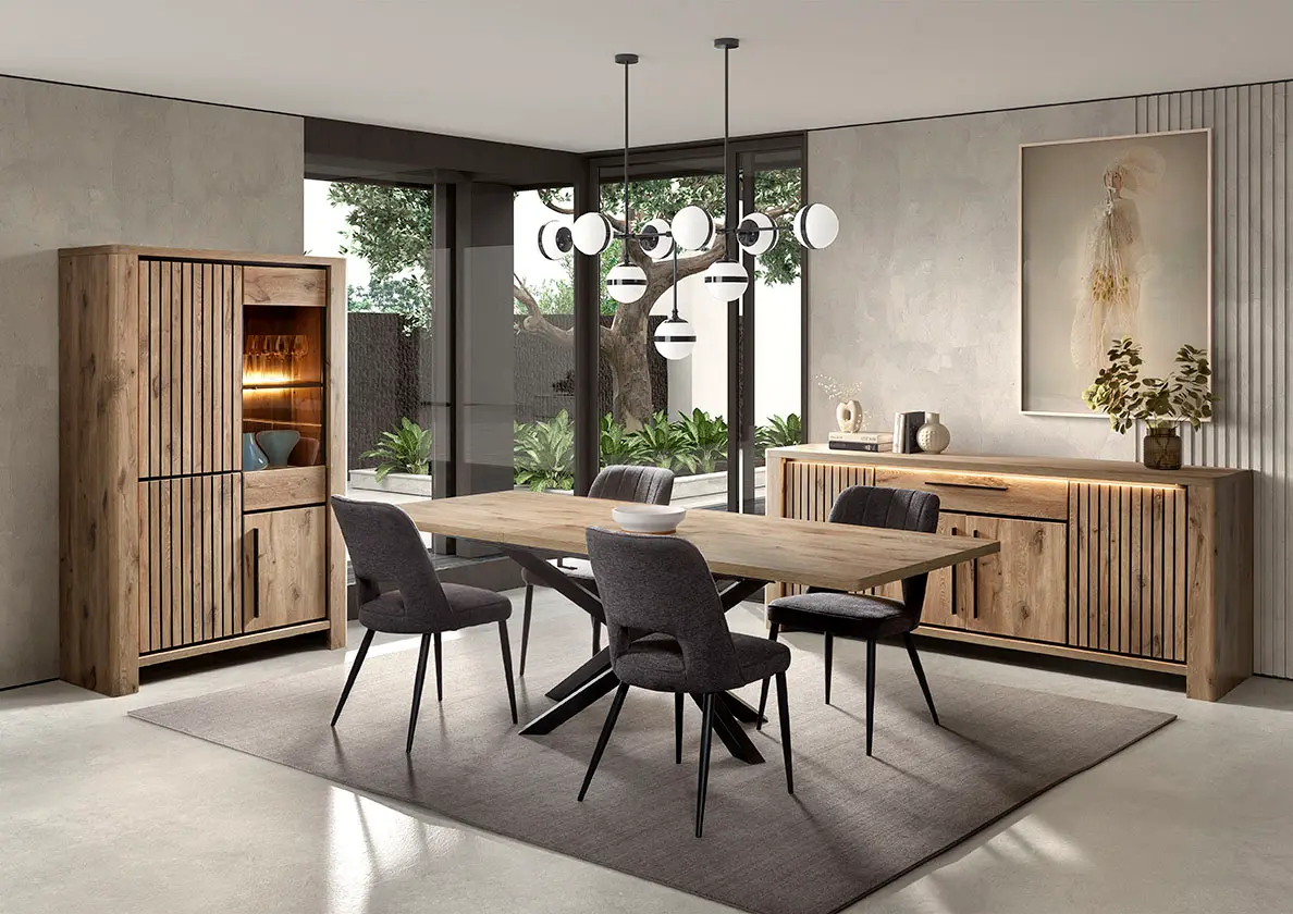 Salle à manger comprenant le vaisselier en 230 x H216,4 cm et la table en 200 cm
