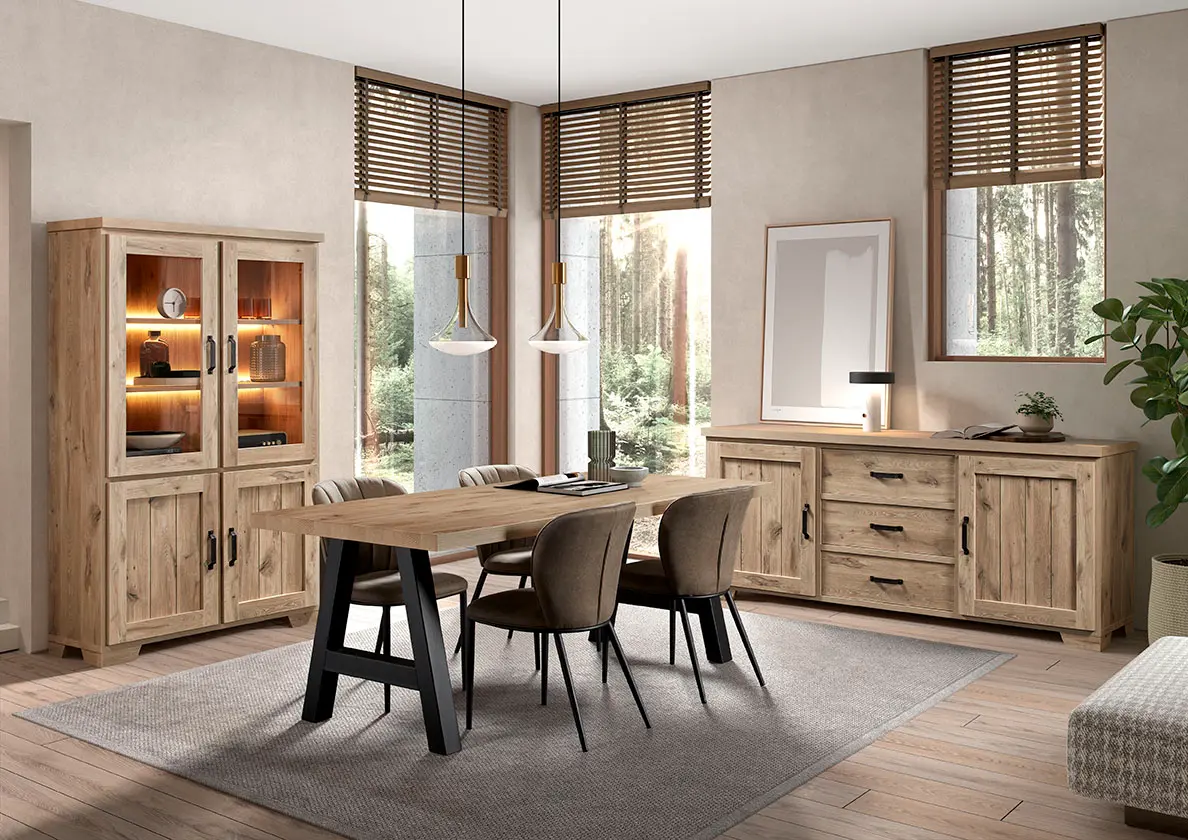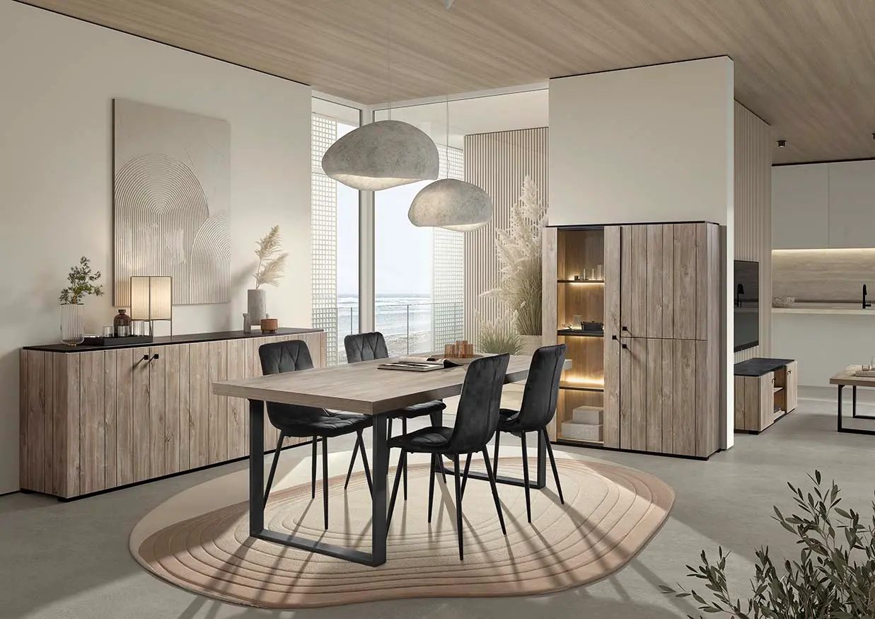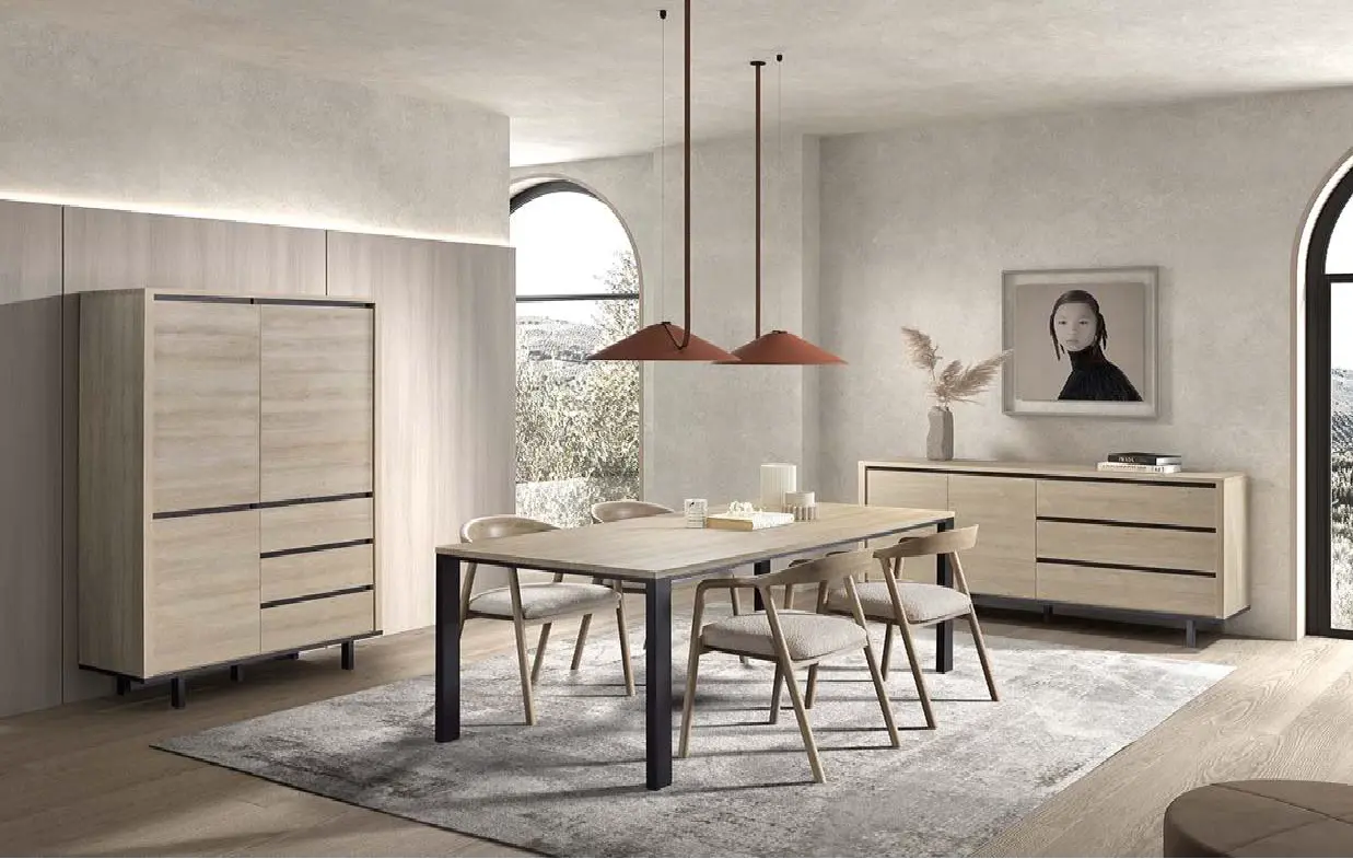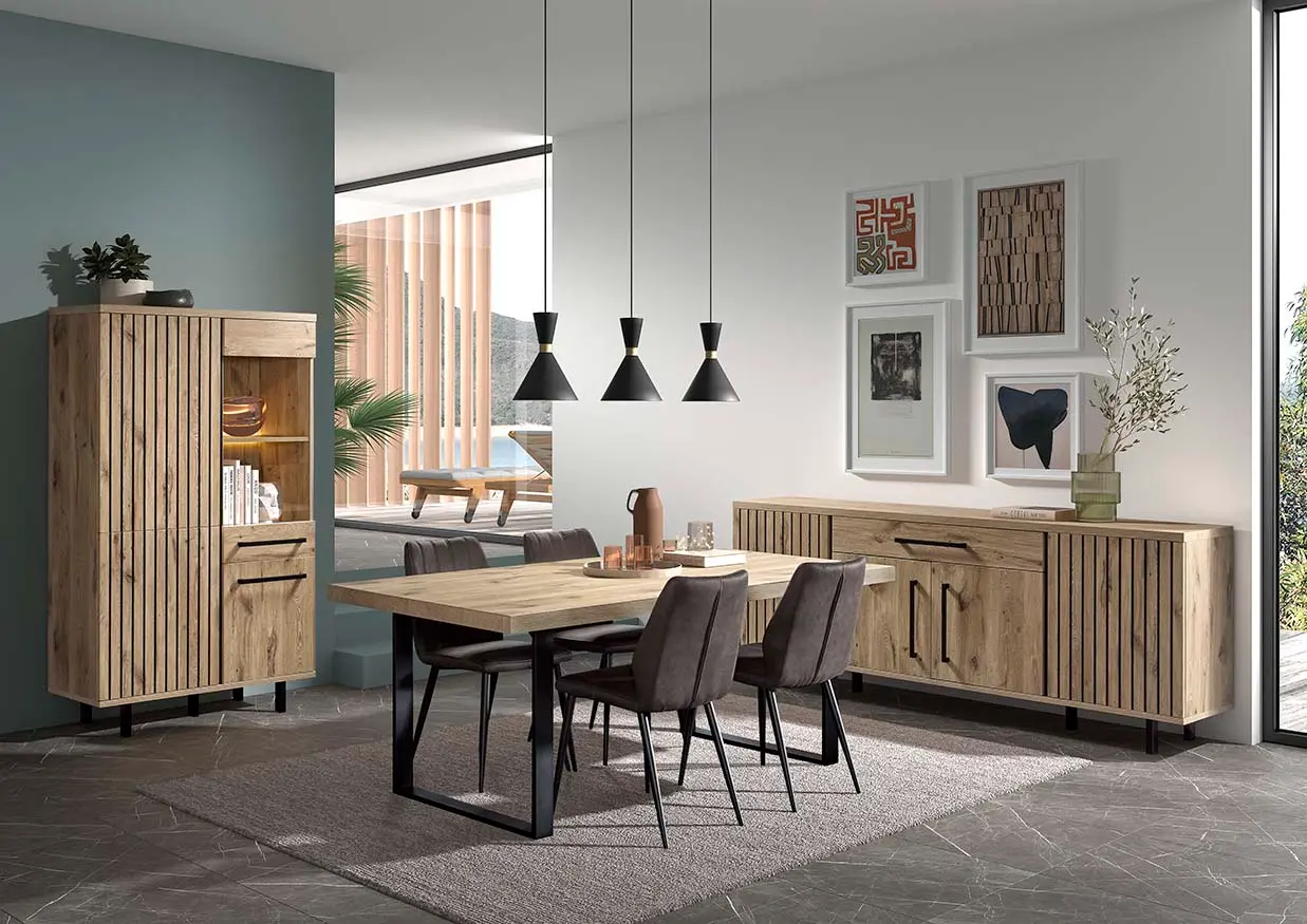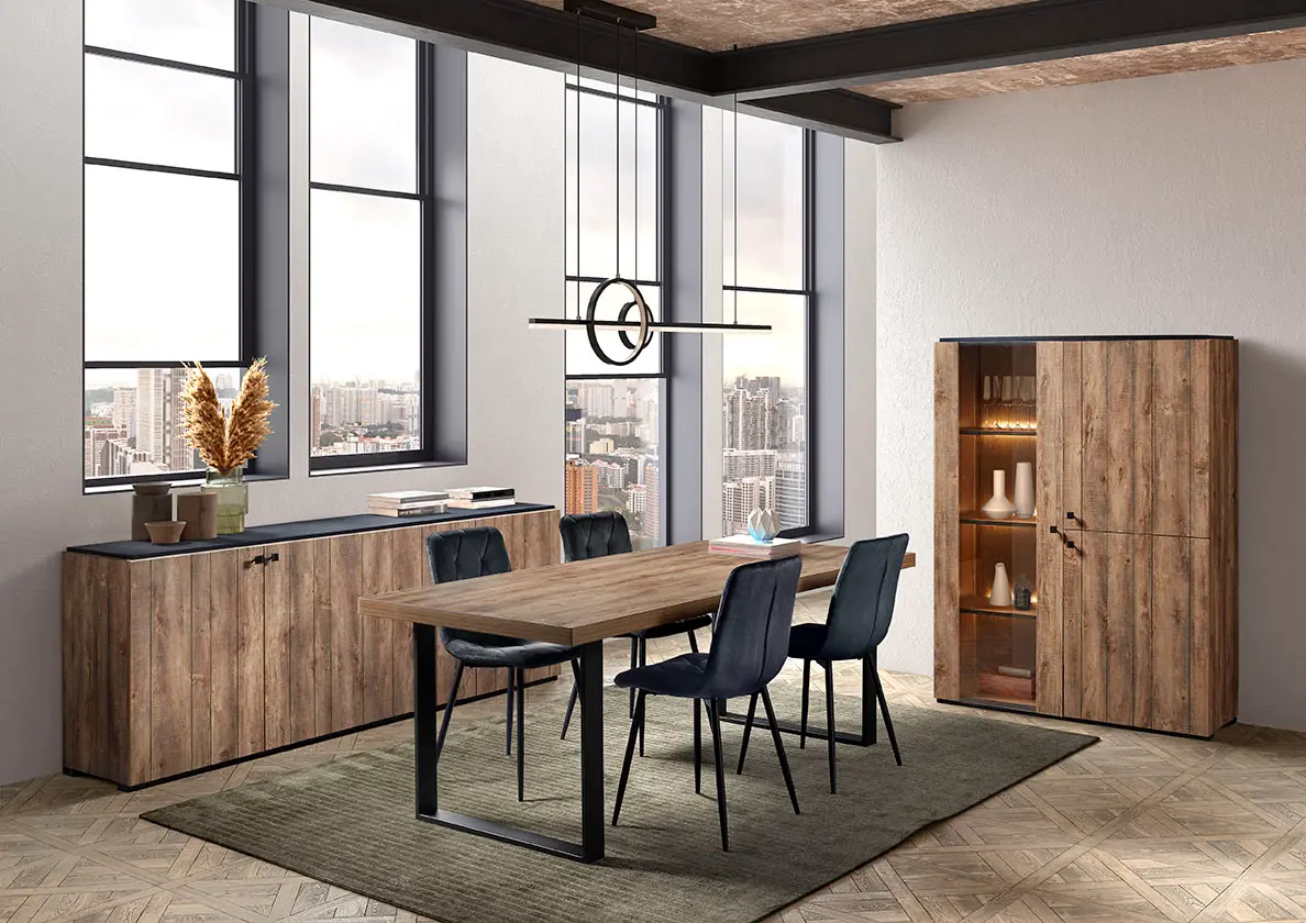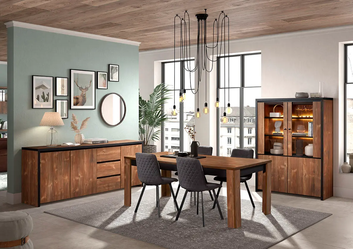 Salle à manger comprenant le vaisselier en 230 x H216,4 cm et la table en 200 cm