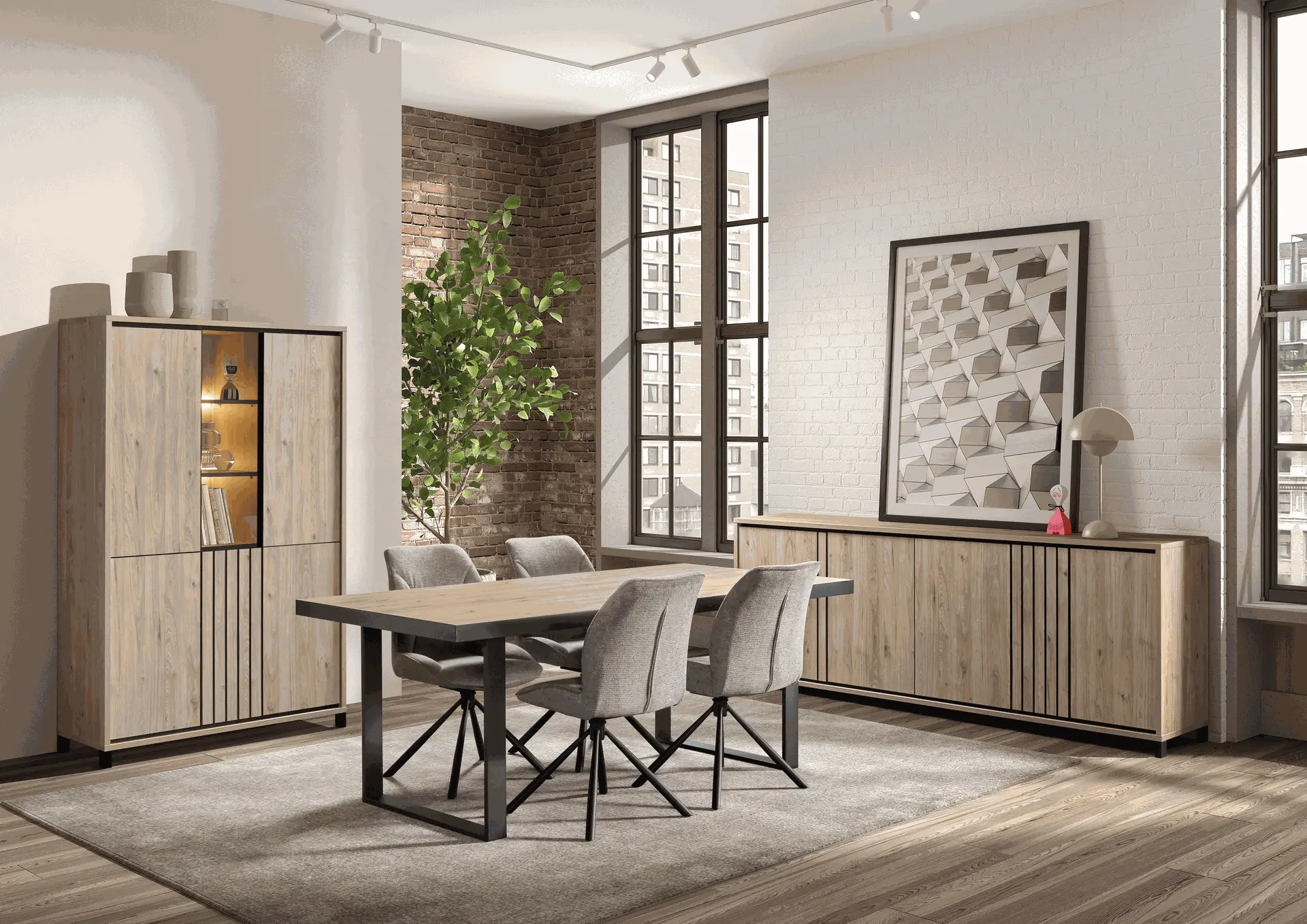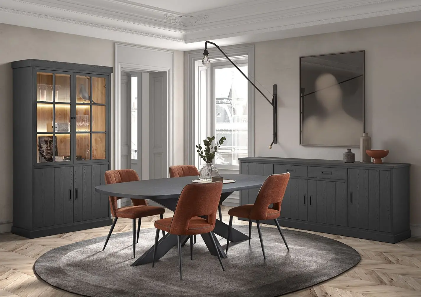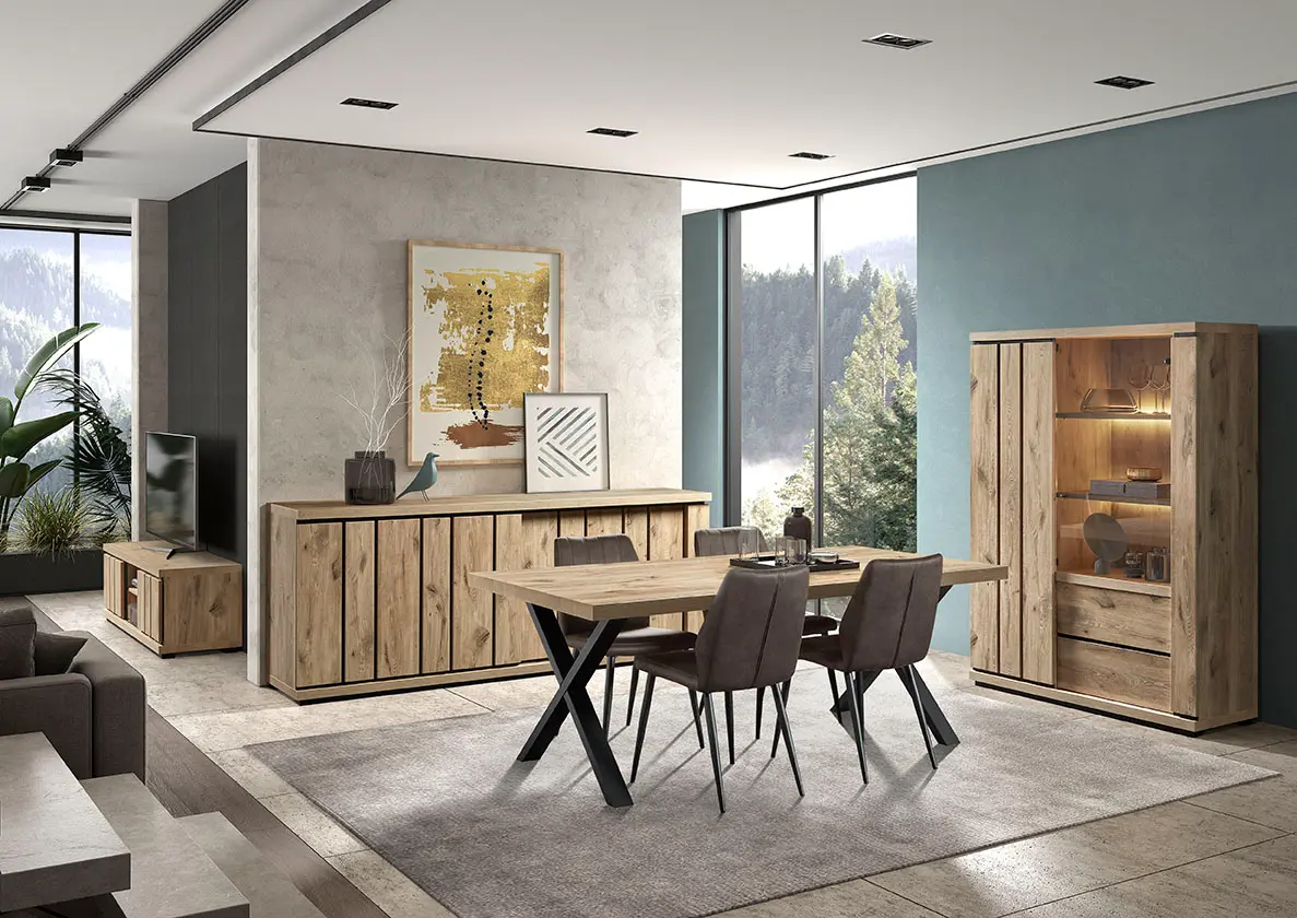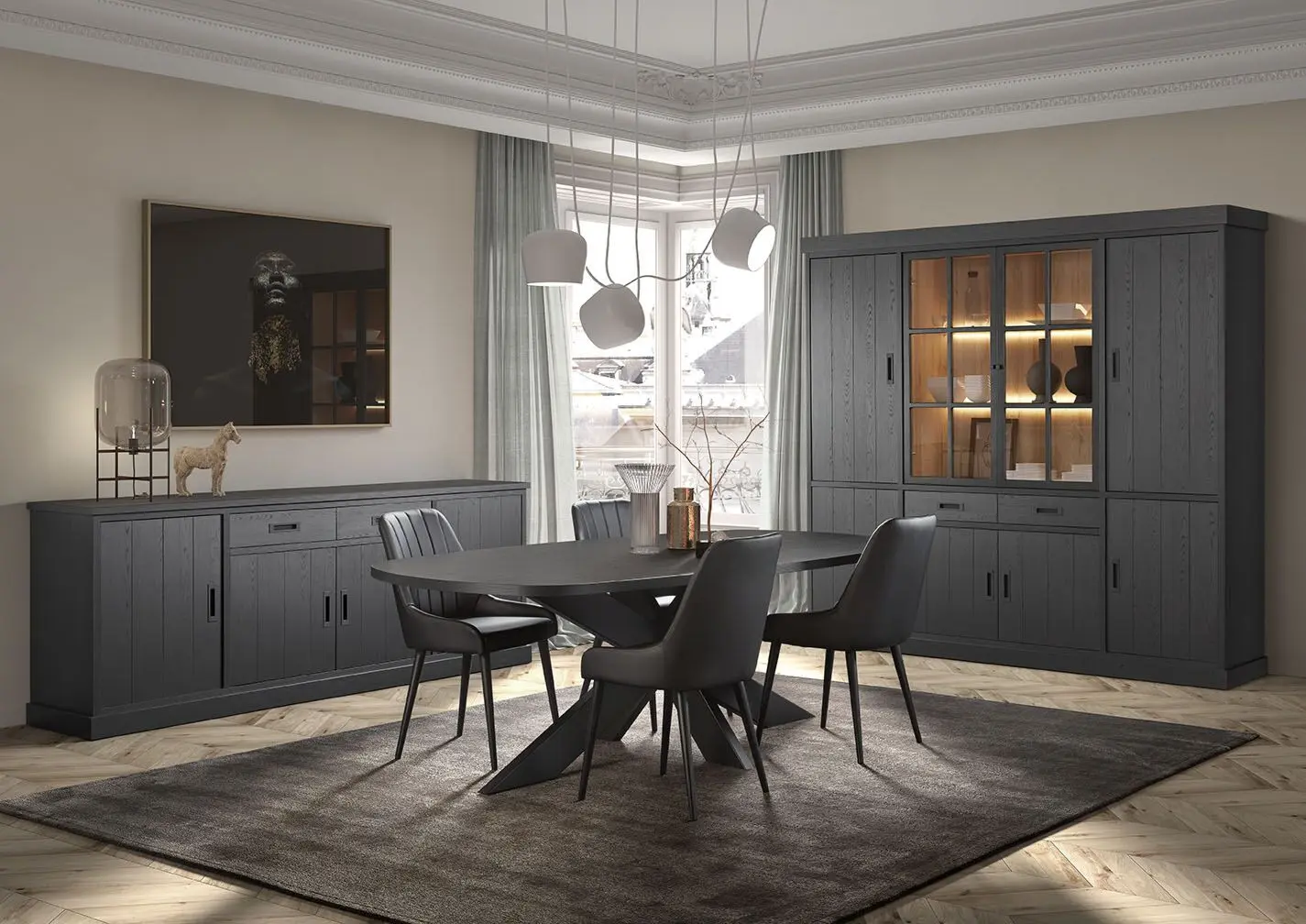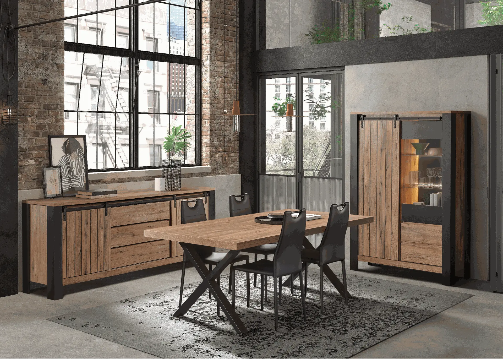 Salle à manger comprenant le vaisselier en 230 x H216,4 cm et la table en 200 cm
